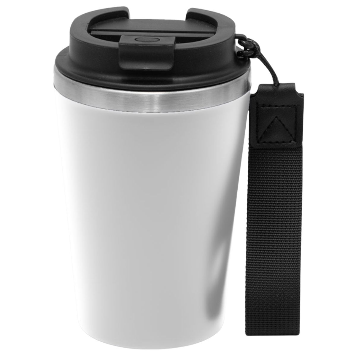The 350ml Nabela Tumbler keeps drinks hot or cold for several hours. It features a stainless steel interior, a PP exterior, and a secure screw-on lid with a flip-top mouthpiece. This practical item suits daily hydration and provides good brand visibility for promotions.