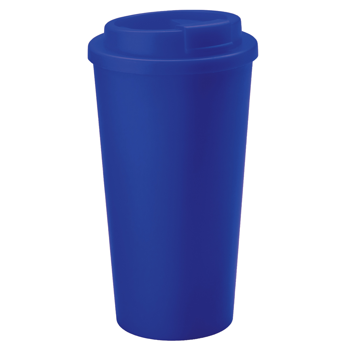 This 500ml plastic take out mug keeps drinks warm while on the move. It features double-walled insulation and a non-spill lid with a flip-up drinking cap. This practical item helps your brand stay visible with clients and staff daily.