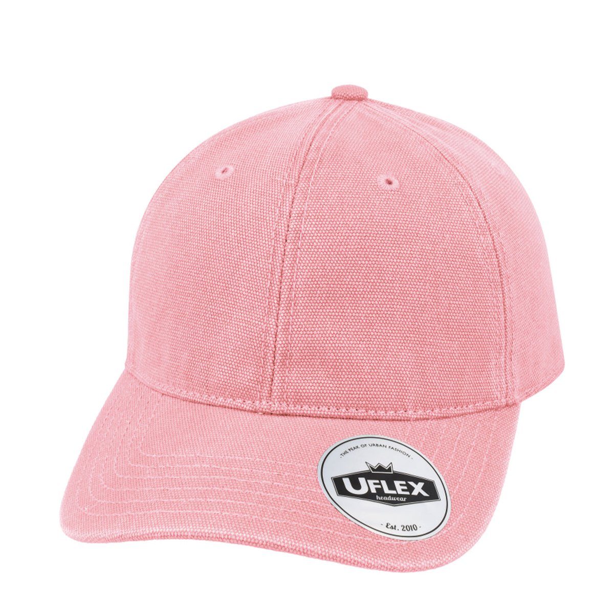 This washed canvas dad cap in light pink is a relaxed item for general promotional campaigns.