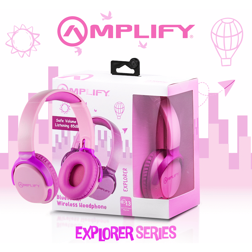The Amplify Explorer Bluetooth Wireless Headphone is a practical item for general promotional campaigns, offering a useful gift for younger audiences. This headphone provides safe audio for learning and entertainment.
