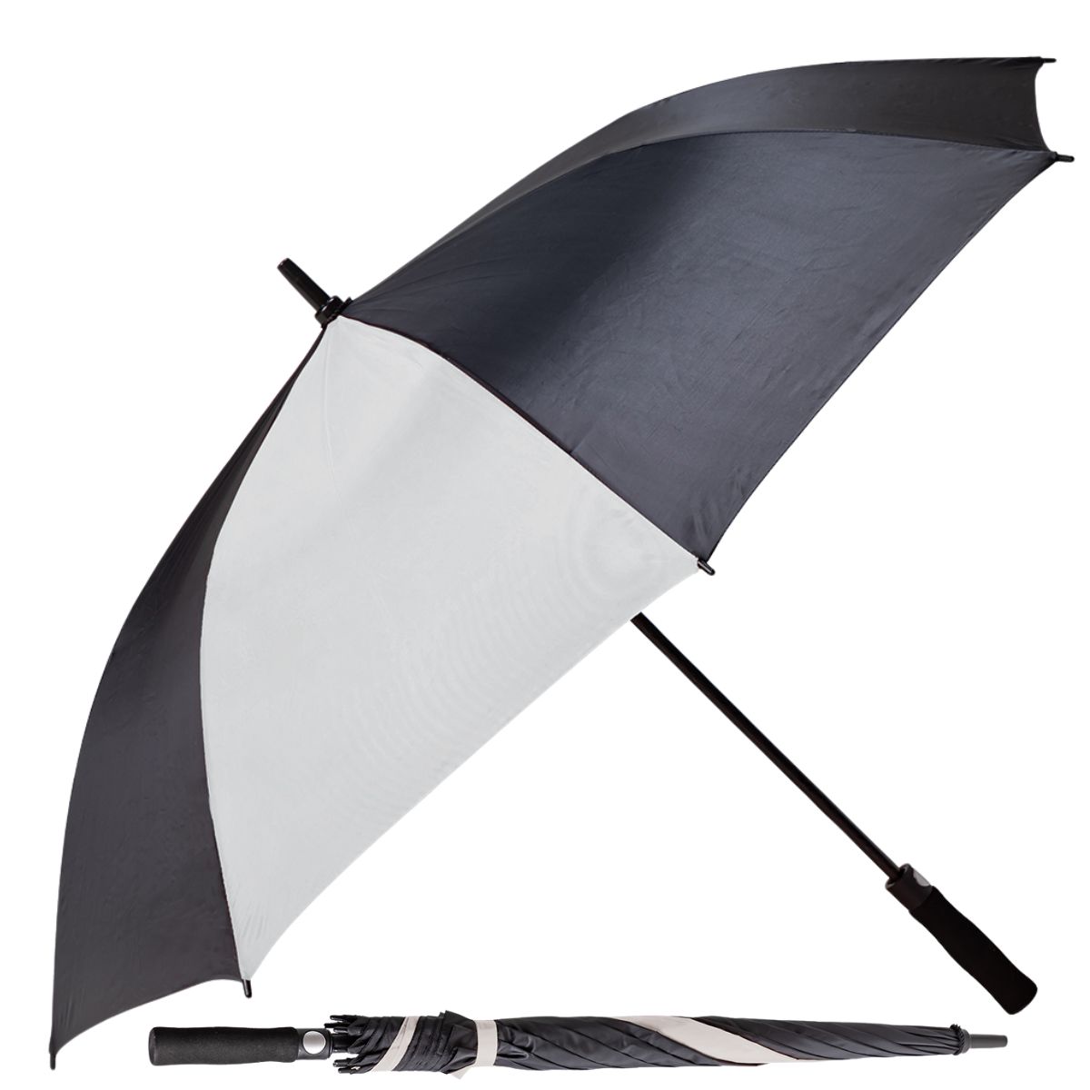 This Classic Pop Up 2 Tone Umbrella protects from weather and highlights your brand. Made from durable 210D polyester, it features a distinct black and lime design. A sturdy steel frame and comfortable EVA handle make this a reliable item for your promotions.