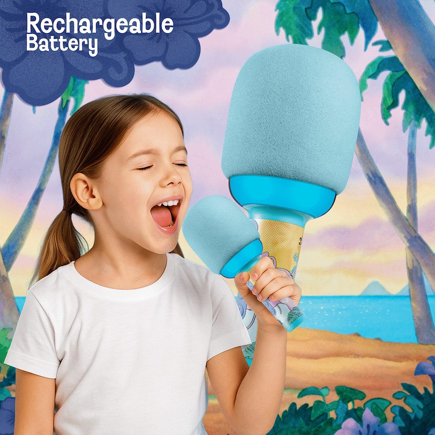 Children can enjoy singing and music with this wireless microphone. It uses Bluetooth V5.3 for easy connection and features colourful RGB lights with an echo sound function. This fun device has official Disney Frozen branding.