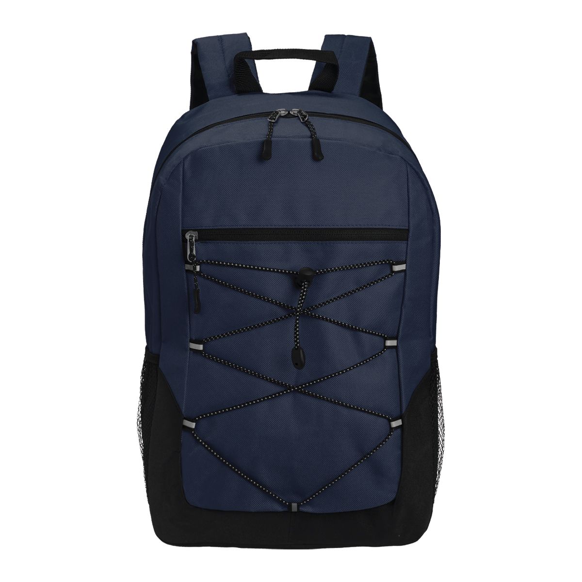 - Includes a front zippered compartment with an elastic bungee cord for quick access items.