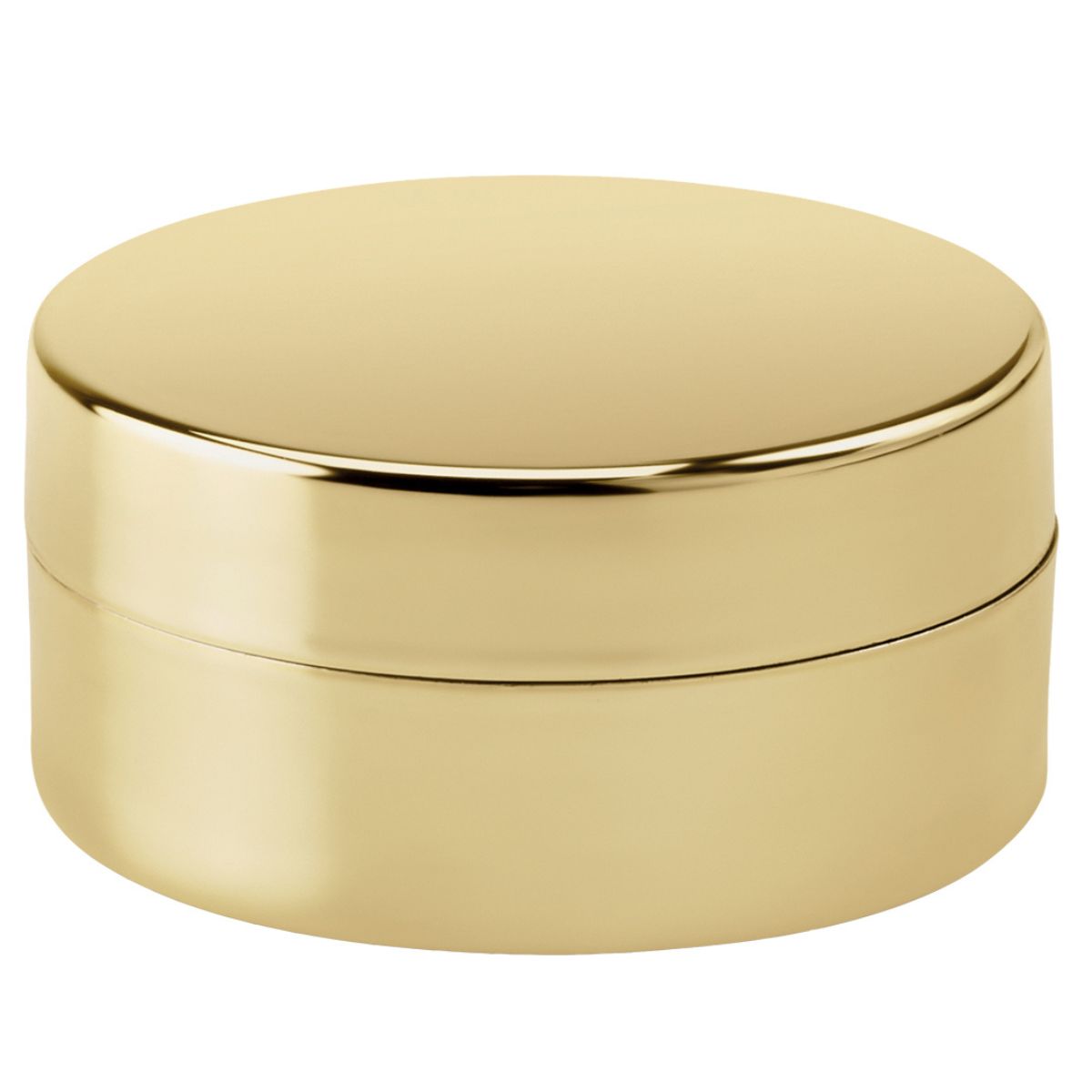• It comes in a compact, round plastic holder with a metallic finish.