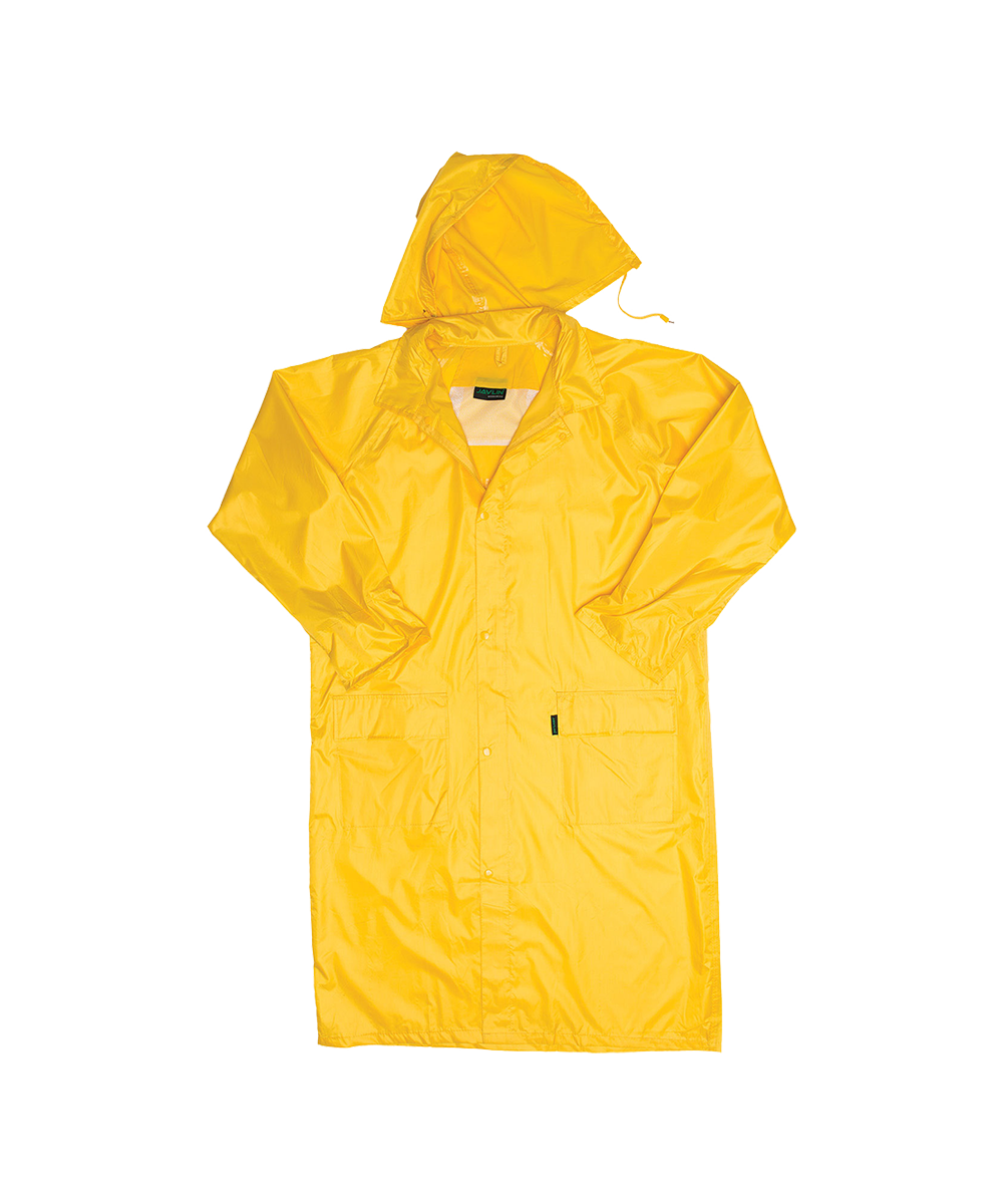 This Polyester PVC calf-length rain coat offers reliable wet weather protection. It is made from durable 185 g/m² Polyester PVC, providing 5000mm waterproof defence with double needle stitching. A stow-away hood adds convenience. This coat is a practical branding item for your staff or clients.