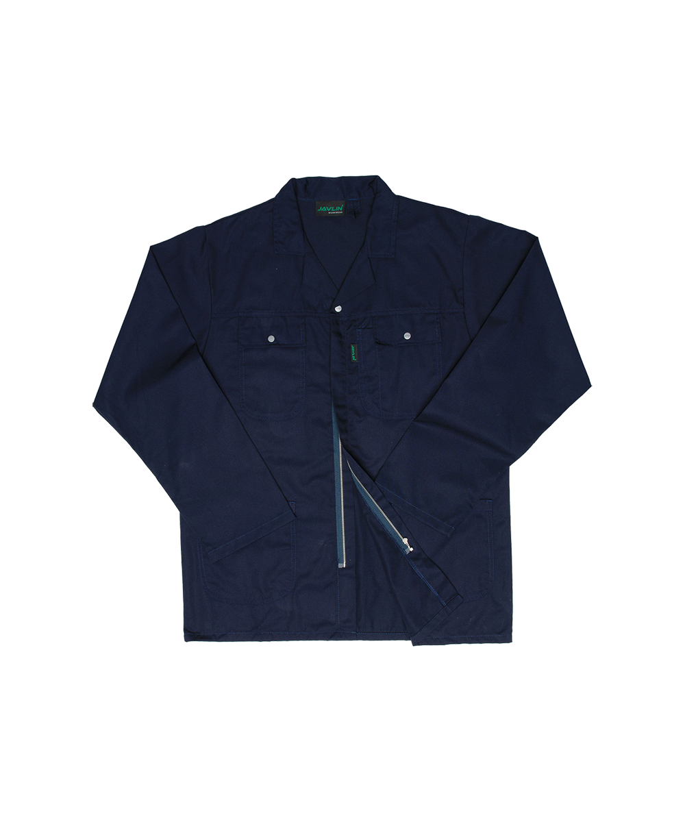 - It features a lapel collar, a left chest pocket with a stud flap and pen division, and a right cellphone pocket with a stud flap.