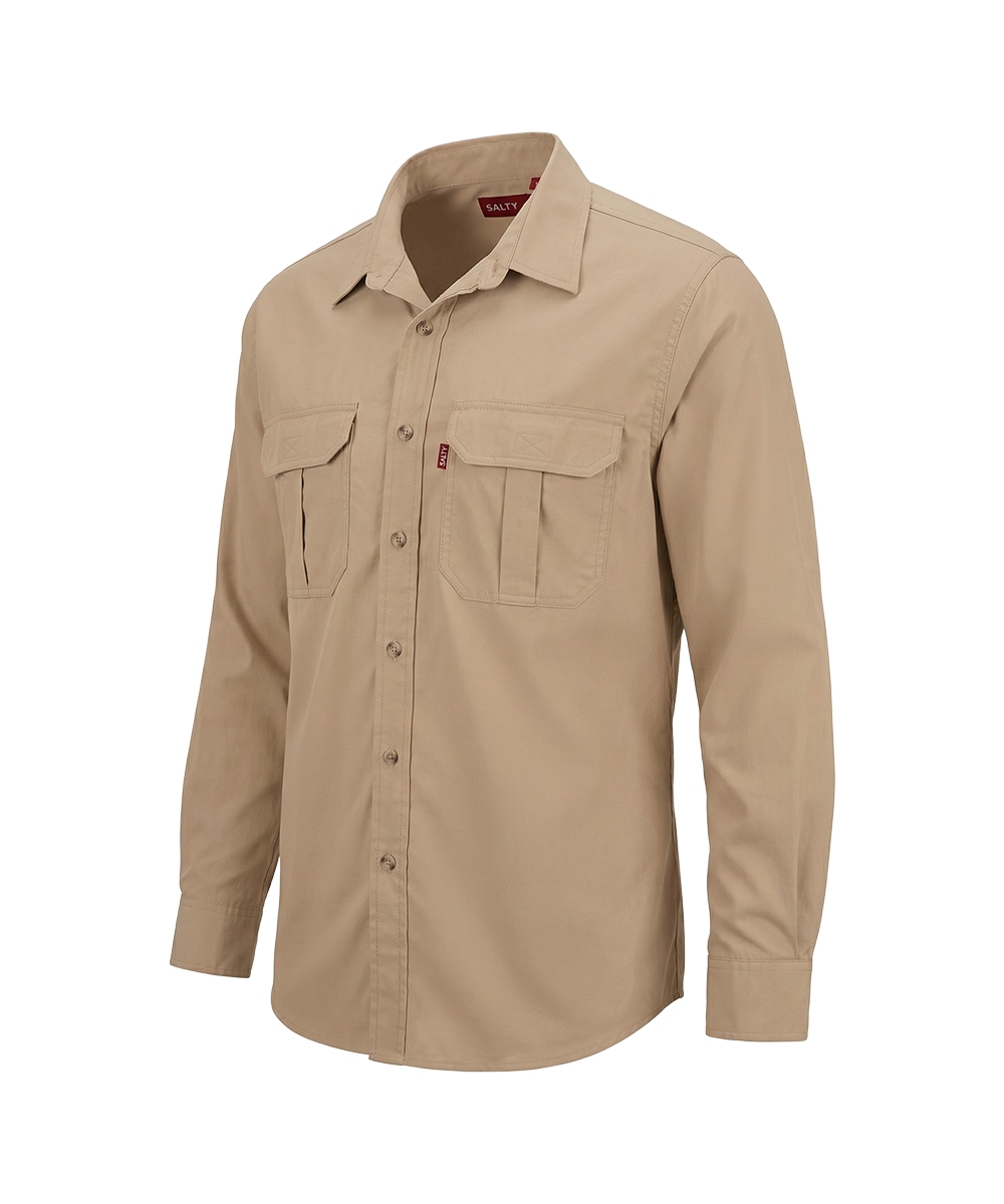 - Features a fully fused sun protector collar and roll up sleeve tabs for adaptability in various conditions.