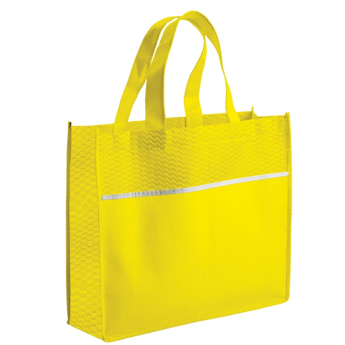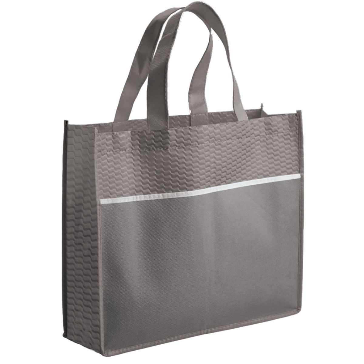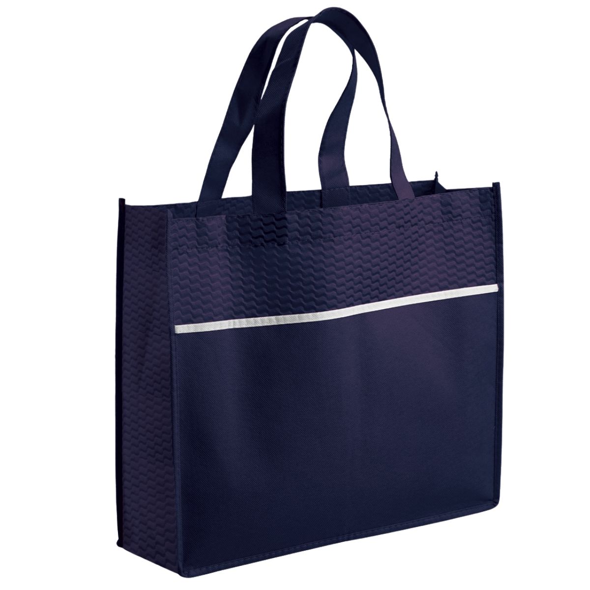 Offer clients a reusable bag with the Ridge Shopper. Made from durable 80gsm non-woven fabric, it features a single main compartment and two strong carry handles. A contrasting strip adds style. This shopper is ideal for general promotional campaigns.