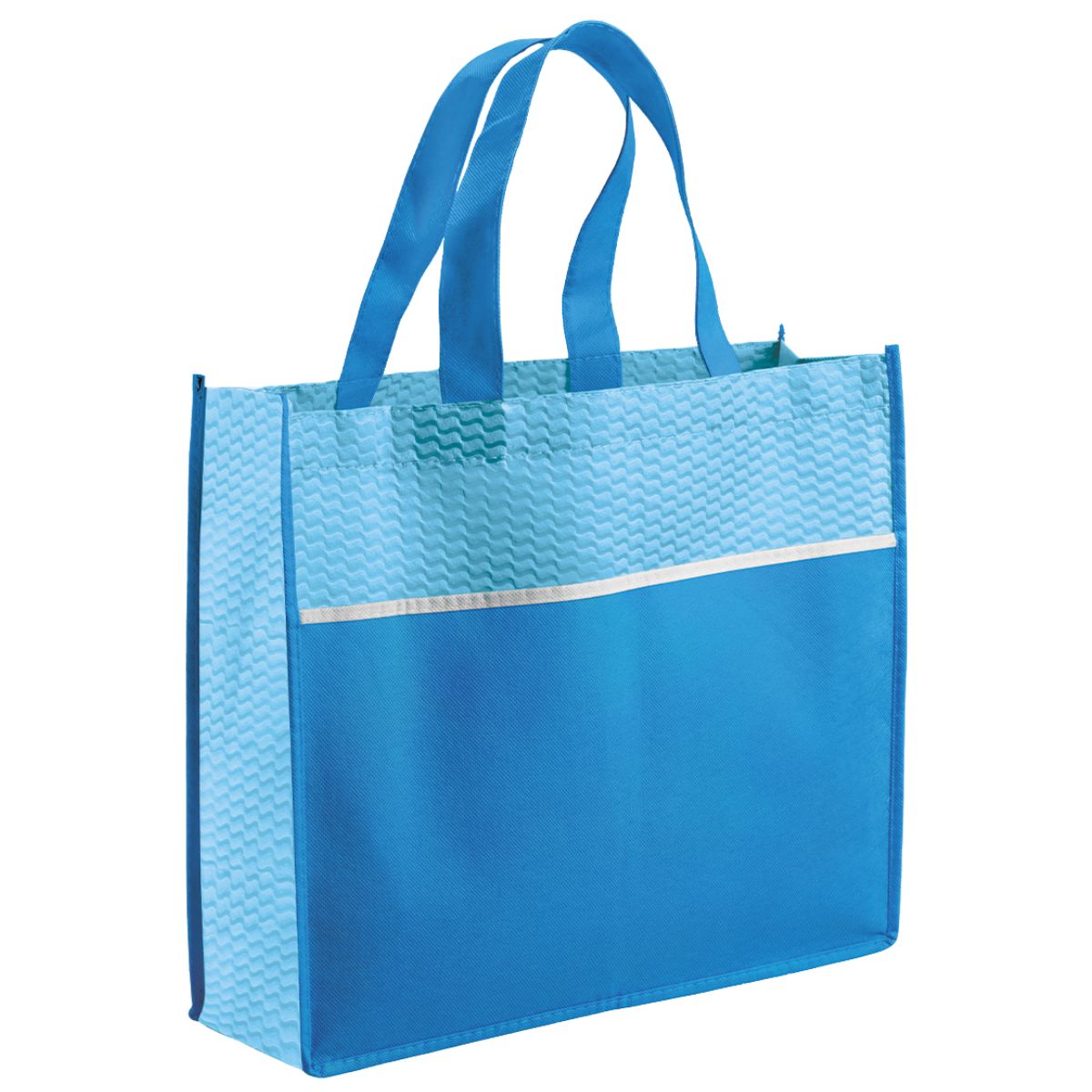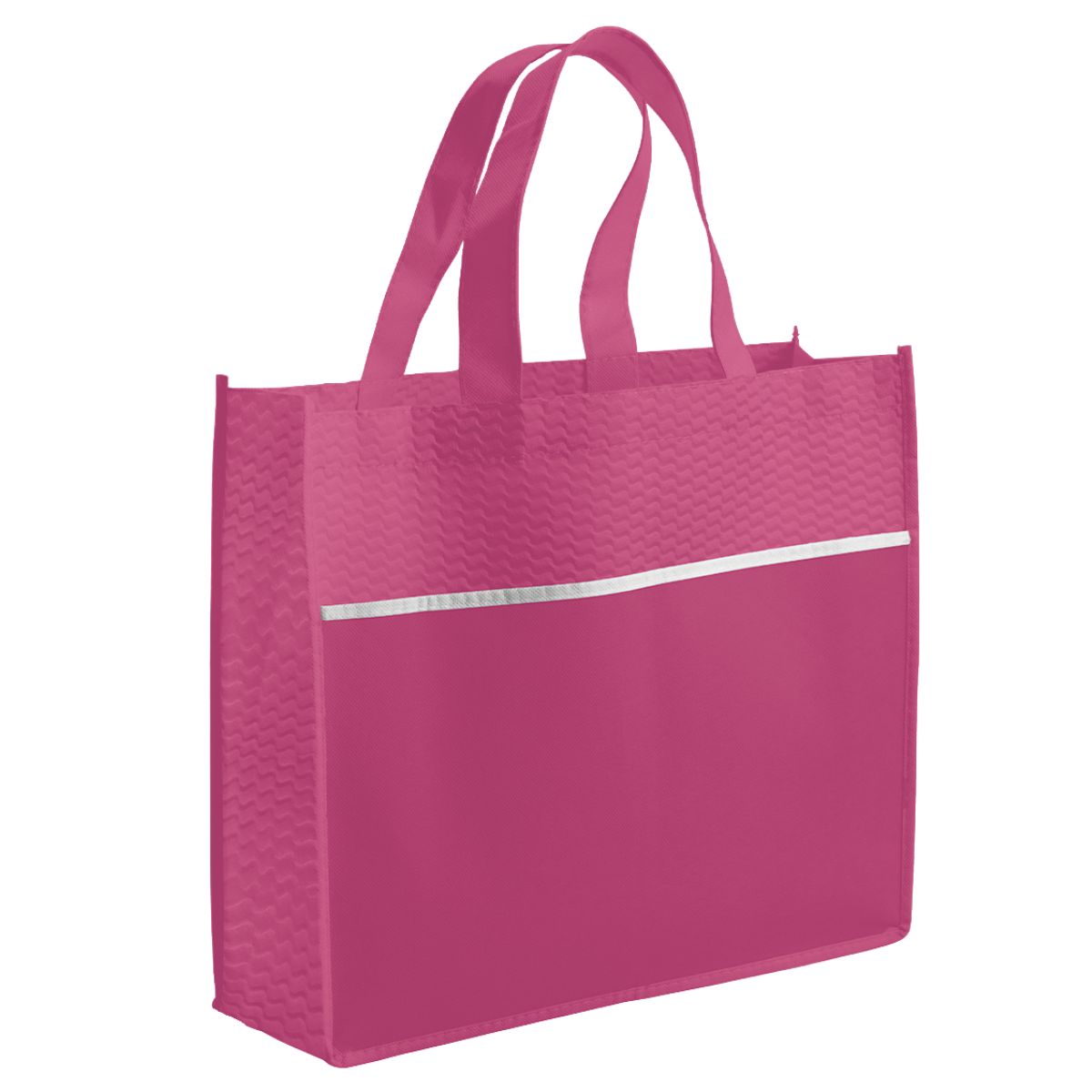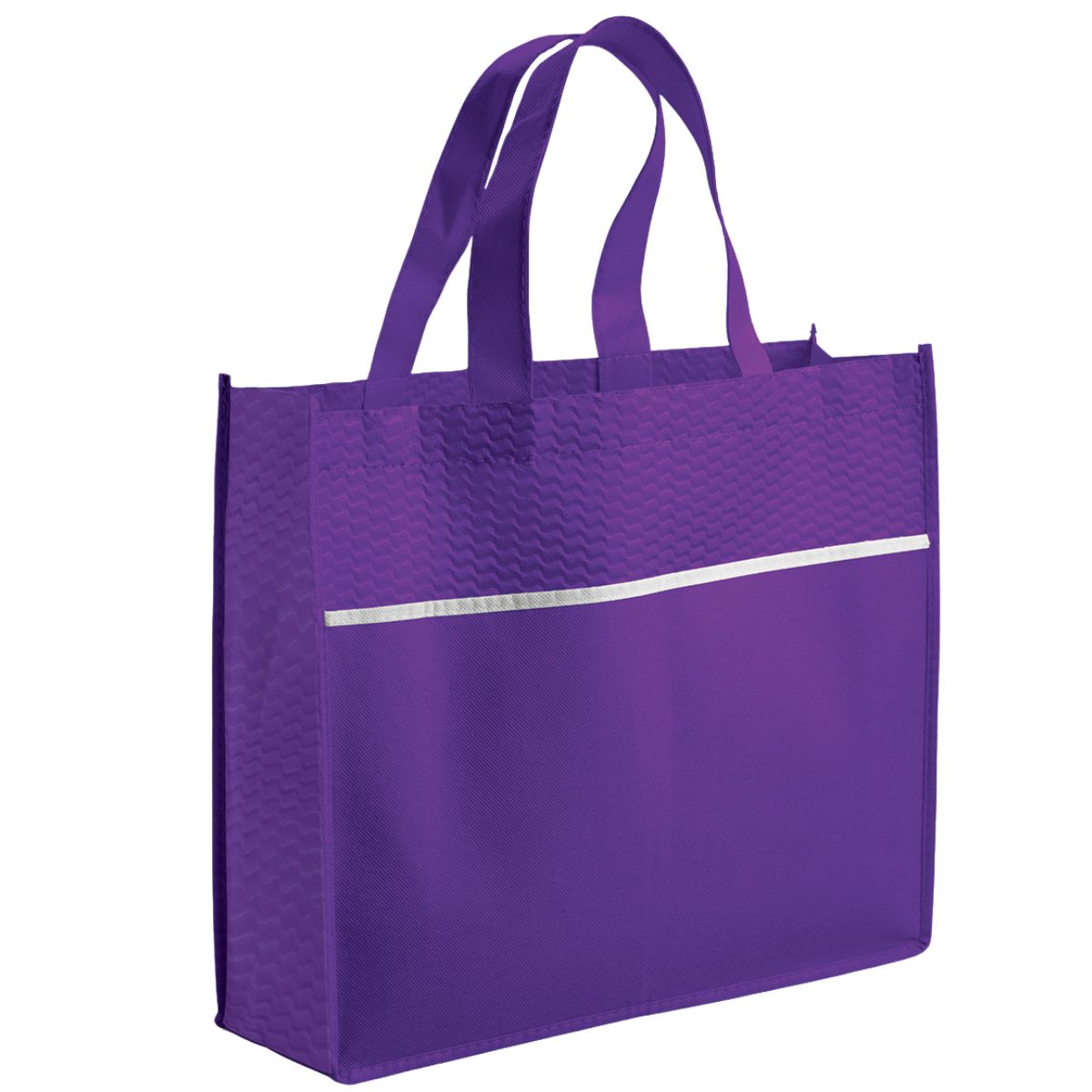 Offer clients a reusable bag with the Ridge Shopper. Made from durable 80gsm non-woven fabric, it features a single main compartment and two strong carry handles. A contrasting strip adds style. This shopper is ideal for general promotional campaigns.