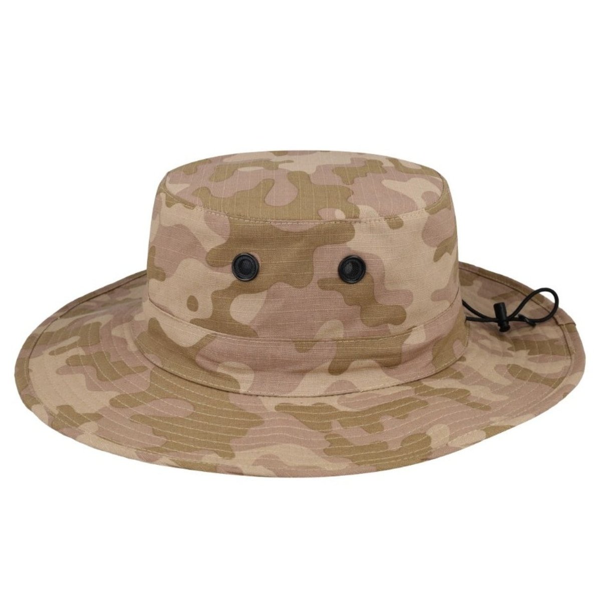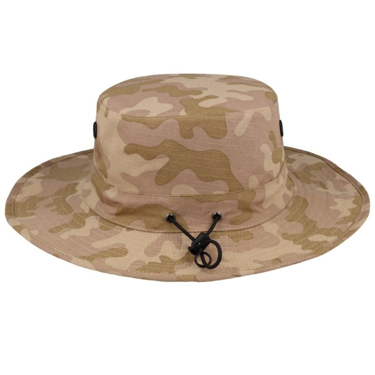 This Camo Green Ripstop Bush Hat provides good brand exposure during outdoor events. Made from durable ripstop fabric, it resists tearing and wear. It features a wide brim for sun protection and an adjustable chin strap for security. This hat is practical for promotional campaigns.
