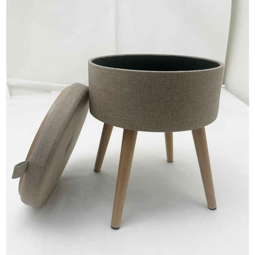 Sophie Round Storage Stool with Wooden Legs