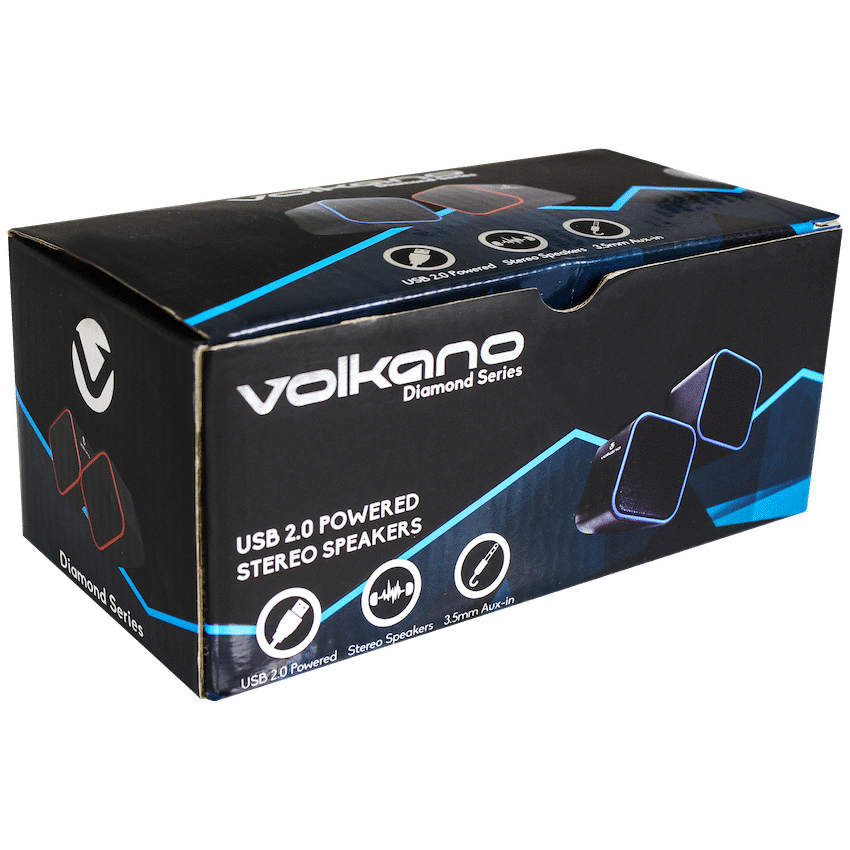 Get clear sound for your desktop or laptop with the Volkano Diamond Series USB Speakers. They draw power from any USB port and connect using a 3.5mm AUX lead for simple setup. These compact speakers provide 2 x 3W stereo output.