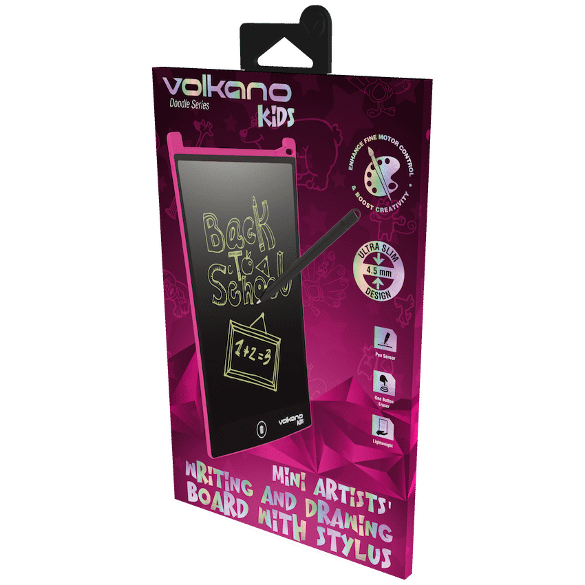 This Volkano Kids Doodle Series 8.5in Writing and Drawing Board provides ample space for drawing and notes. Its 8.5-inch LCD surface is light, making it easy for children to carry. Designed for repeat use, it is a practical Volkano Kids item.