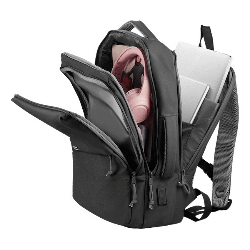 - Offers multiple internal and external pockets for organising chargers, cables, and other daily essentials.