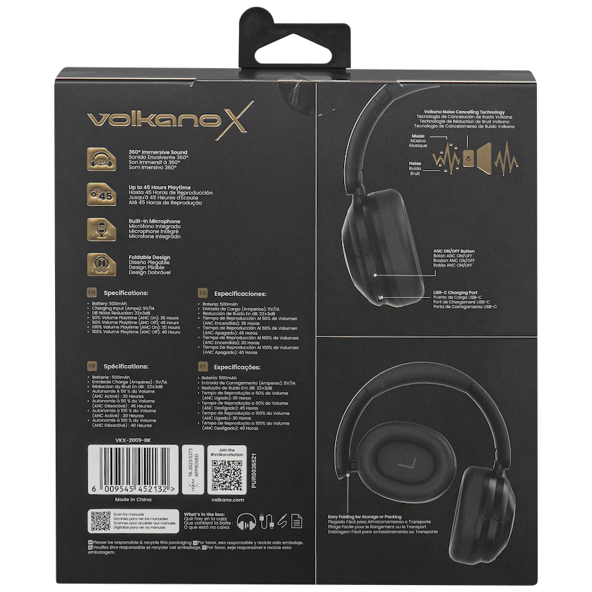 Enjoy a quiet listening experience with VolkanoX Halo ANC Bluetooth Headphones. Active Noise Cancelling reduces unwanted sound by 30dB. Get up to 45 hours of playtime from the 500mAh battery. These headphones provide clear sound, typical of VolkanoX products.
